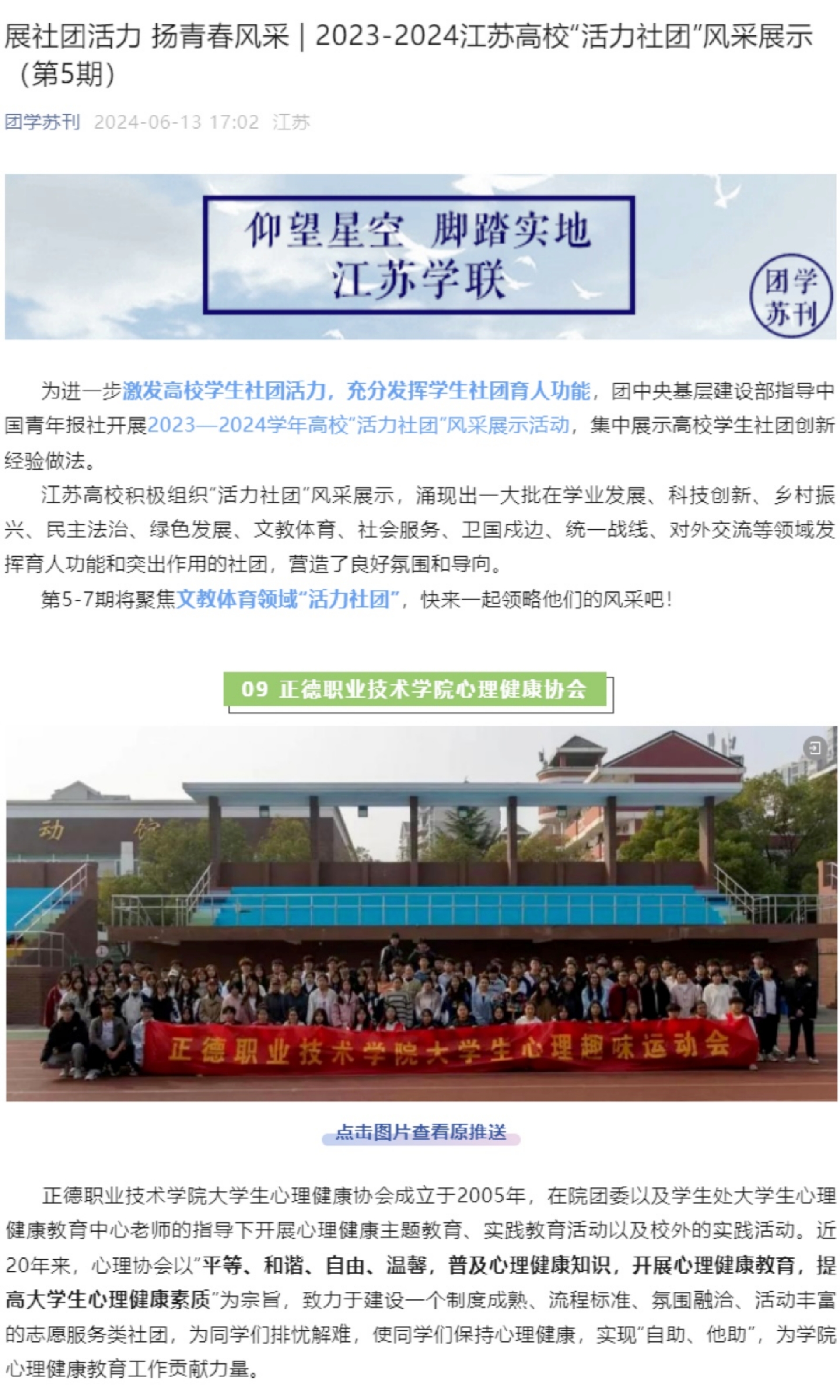 喜报——我院心理健康协会成功入选2023-2024江苏省高校“活力社团”