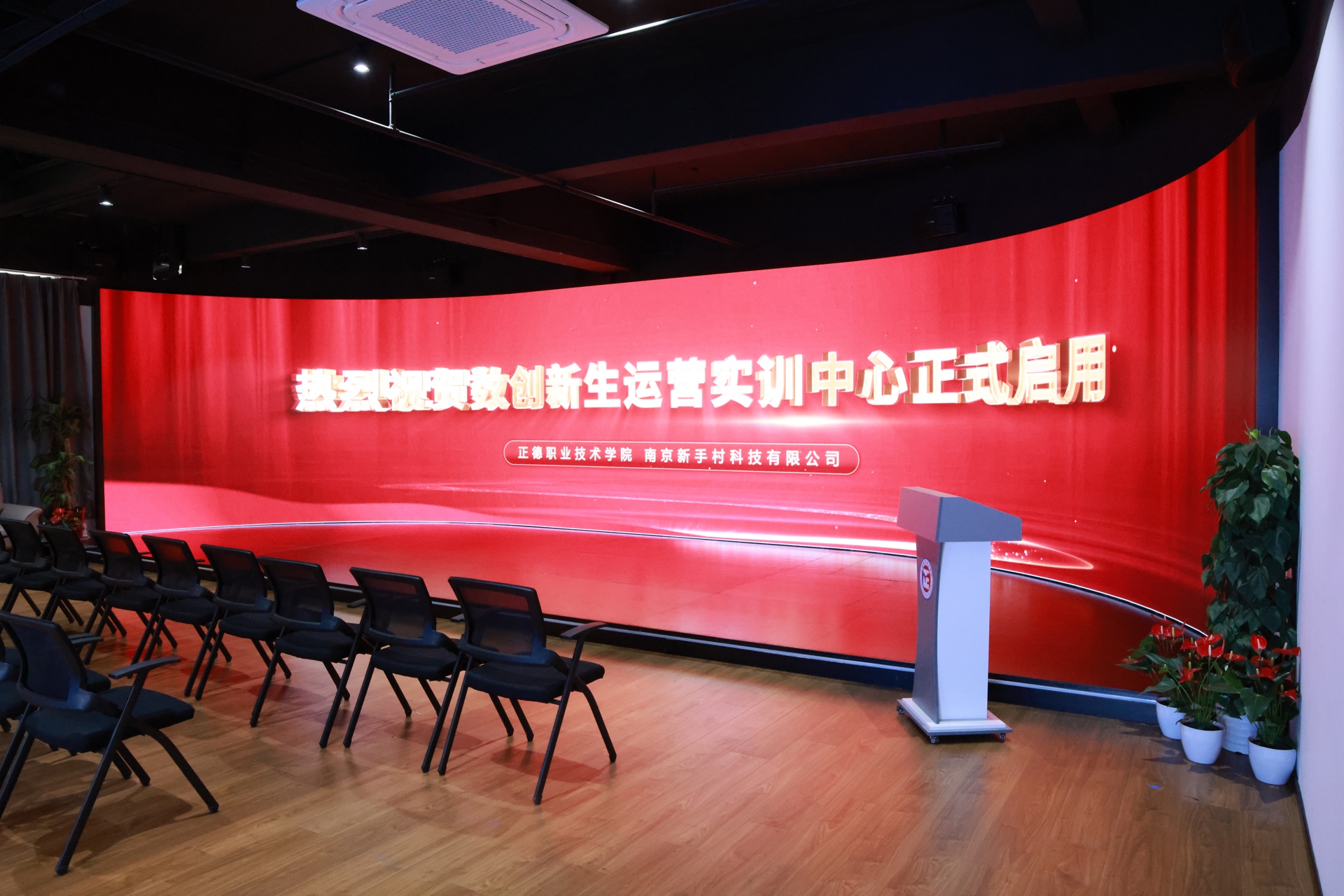 数创新生运营实训中心是由我院与南京新手村科技有限公司联合打造的产教融合创新平台,立足数字经济时代人才需求,依托“教育+科技+产业”三维协同模式,面向网络营销与直播电商、融媒体技术与运营等相关专业学生,构建全链条实战型人才培养体系。