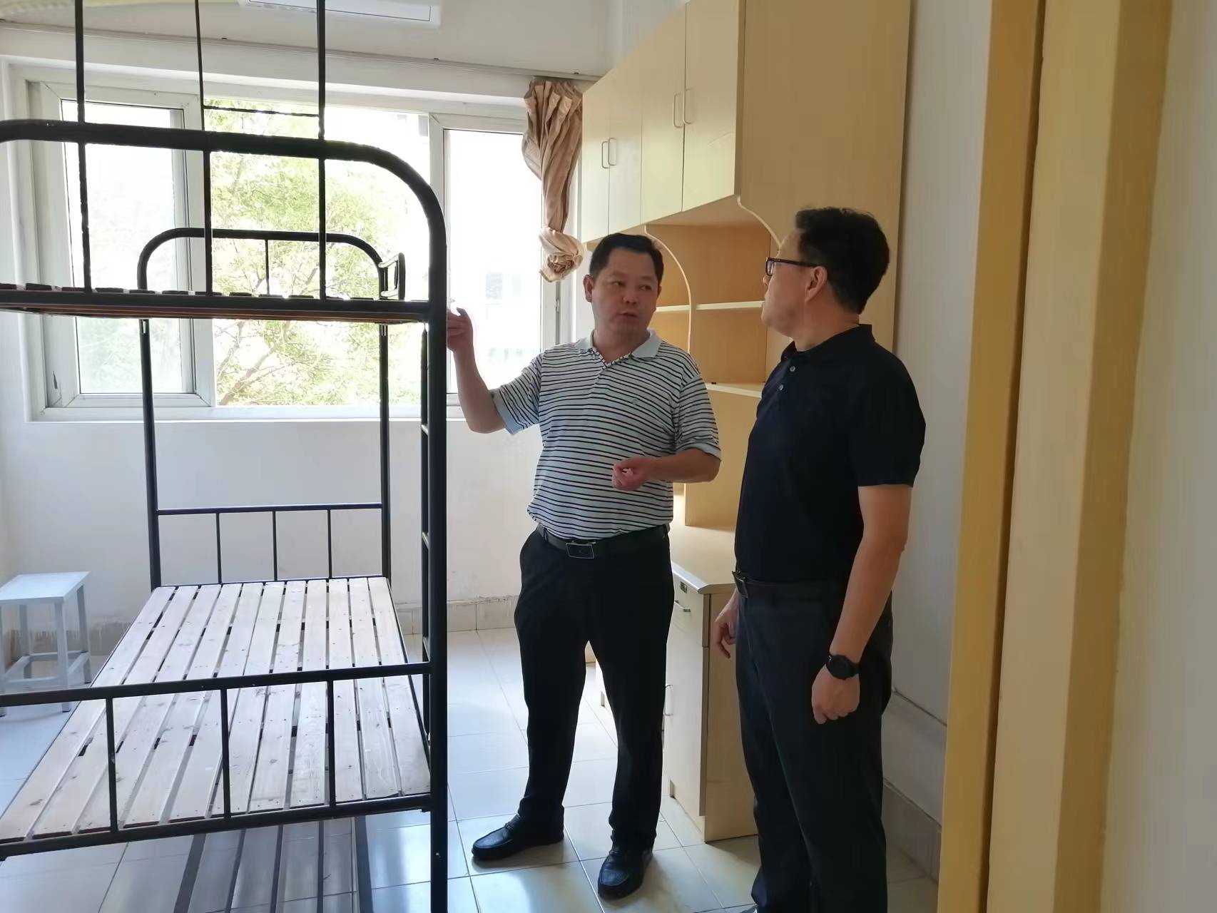 7月27日下午,院长孙永荣,副院长赵凯雷前往学院南北校区,深入视察天桥建设、教学楼防水、学生公寓维修改造、西干道小平房出新等校园改造施工现场,检查安全生产情况,指导校园安全工作,慰问现场工作人员。