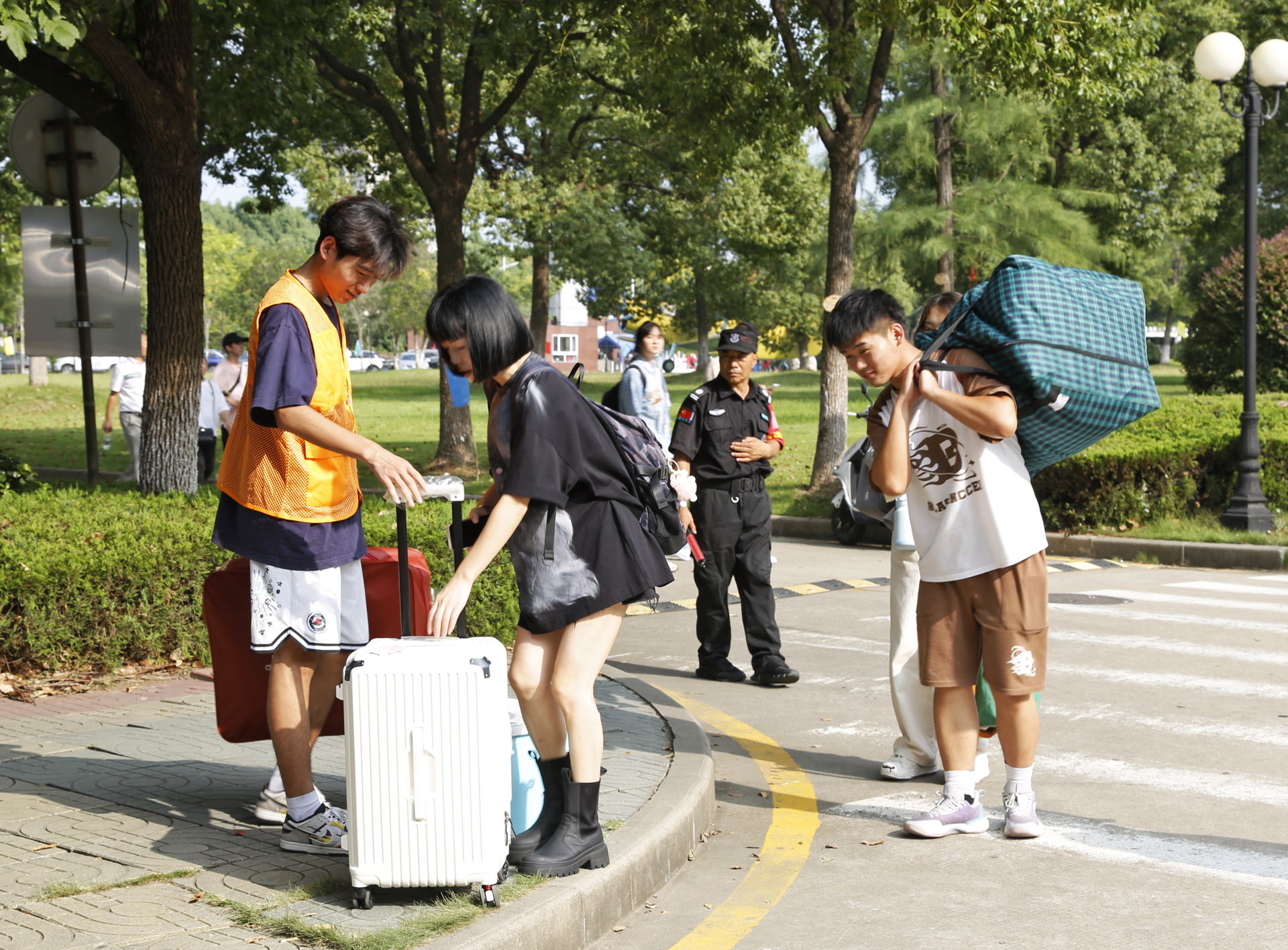 9月7日下午,迎新工作正式开始,校园里彩旗飘扬,迎新标语亮眼醒目,处处洋溢着青春与活力。在现场,迎新各项工作有序展开。为了方便选择公共交通到校的新生及家长,blh漫画 在公交车站点及地铁站设置了志愿者接待,在学校门口安排工作人员引导自驾来校的学生及家长有序进入;各系报到点热火朝天,为新生答疑解惑,帮助大家顺利完成报到;学院大门口、迎新报到点、学生公寓,随处可见身着不同颜色马甲志愿者们忙碌的身影,各个社团也为2023级新生们带来了精彩的现场展示;可爱的小正机器人“校园小卫士”也在迎新现场进行校园引导、防诈宣传等工作。