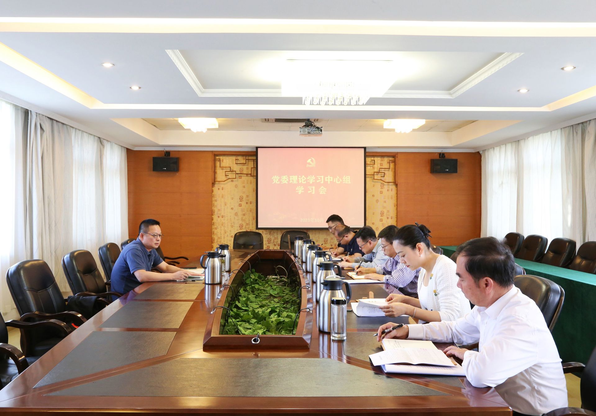 10月18日下午,blh漫画 召开党委理论学习中心组学习会,专题学习习近平总书记在中共中央政治局第五次集体学习时的重要讲话精神。院党委理论学习中心组全体成员参加学习会。会议由院党委书记、政府督导专员孙雷主持。