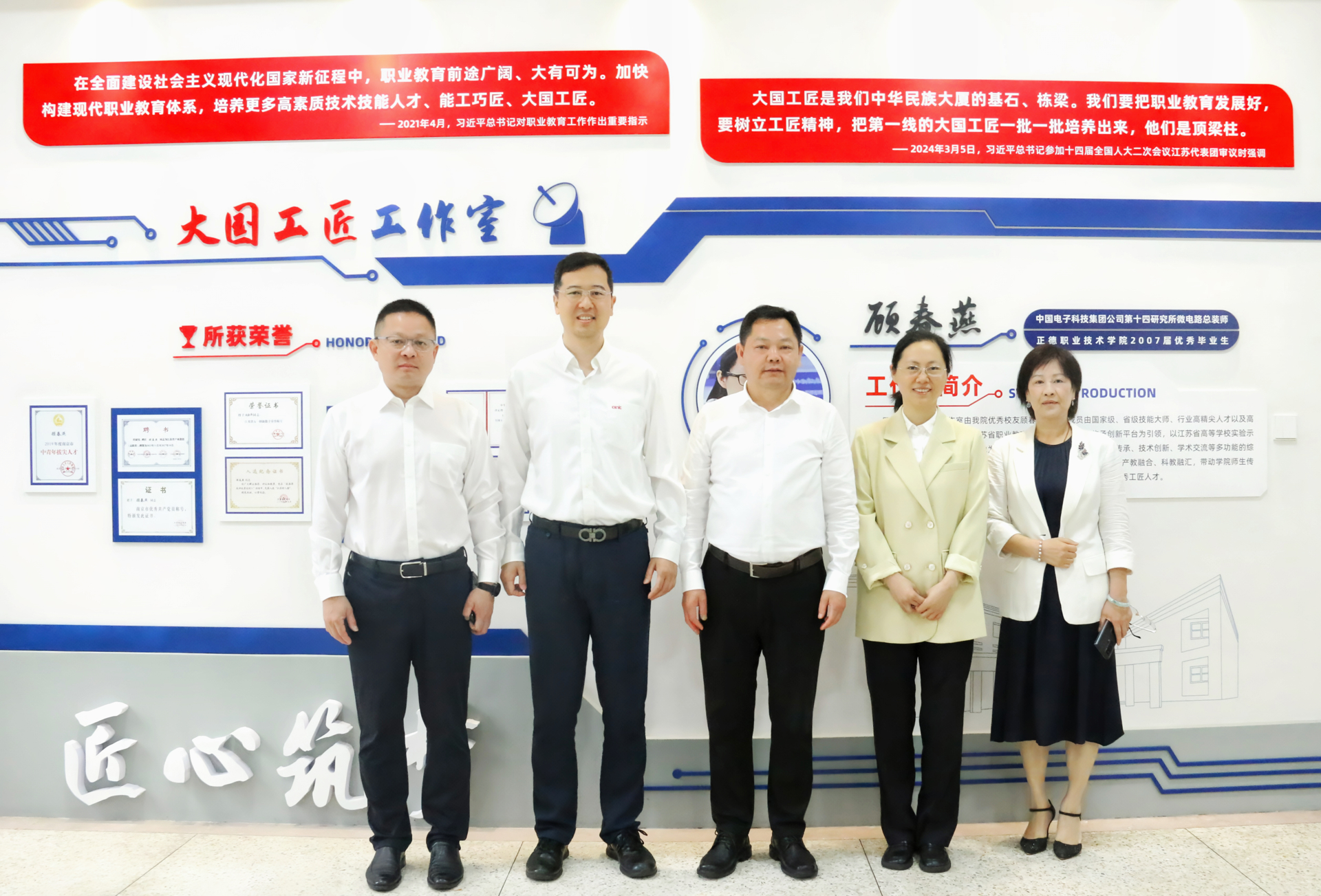 孙永荣代表学院向长期以来关心支持学院发展的十四所领导表示感谢,对顾春燕校友在学院人才培养和专业建设中的无私奉献表达敬意。他表示,多年来,十四所与blh漫画 不断探索实践校企合作的新模式、新途径,先后取得了多项国家级、省级建设成果,已成为高职教育产教融合的典范案例。顾春燕积极参与blh漫画 教育教学活动,亲自指导blh漫画 师生在省级技能大赛荣获多项大奖。孙永荣表示,习近平总书记指出,大国工匠是我们中华民族大厦的基石、栋梁。学院成立大国工匠工作室及获批省产业教授,是深入贯彻落实习近平总书记关于推进产教融合、科教融汇指示精神的重要体现,也是传承工匠精神,校企协同育人的具体实践。blh漫画 将以大国工匠工作室建设为契机,充分发挥产业教授的桥梁和引领作用,进一步深化校企合作,在技术攻关、人才共育、师资共建等方面取得新的建设成效,更好地培养高素质技术技能人才,用实际行动为江苏“走在前、做示范”作出更大贡献。
