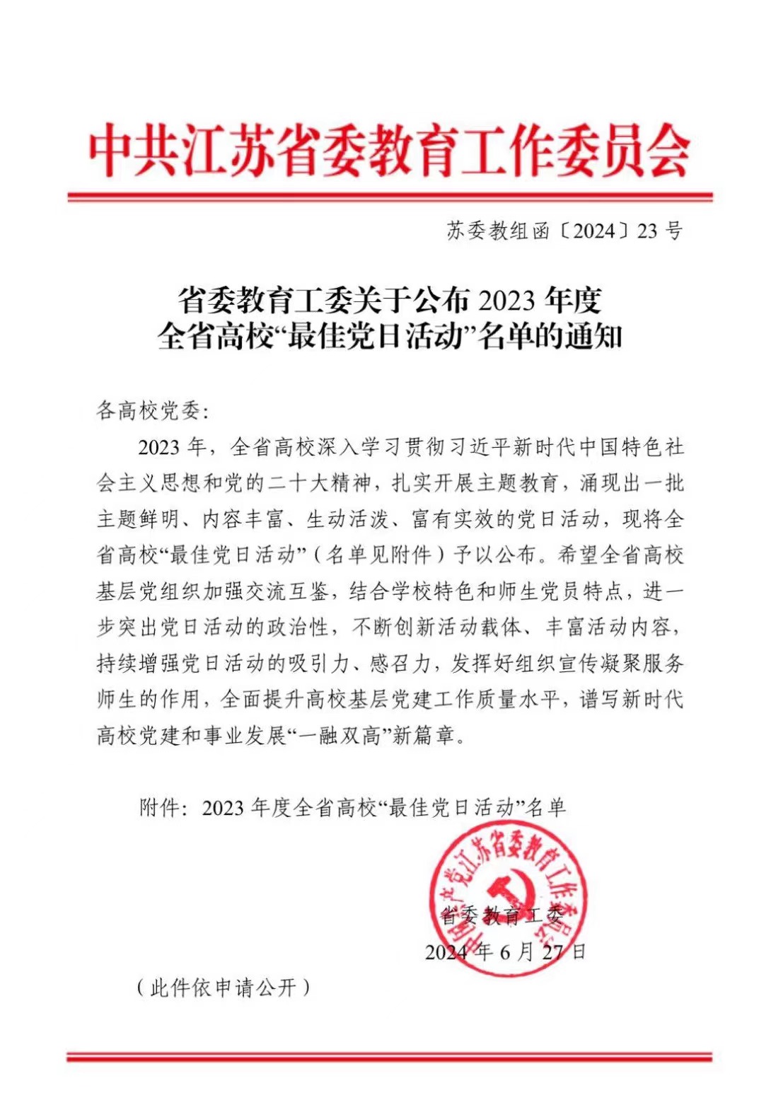 近日,中共江苏省委教育工委公布了2023年度全省高校“最佳党日活动”名单(苏委教组函〔2024〕23 号),blh漫画 基础教育系党支部的“清风润校园,倡廉守初心”入选。