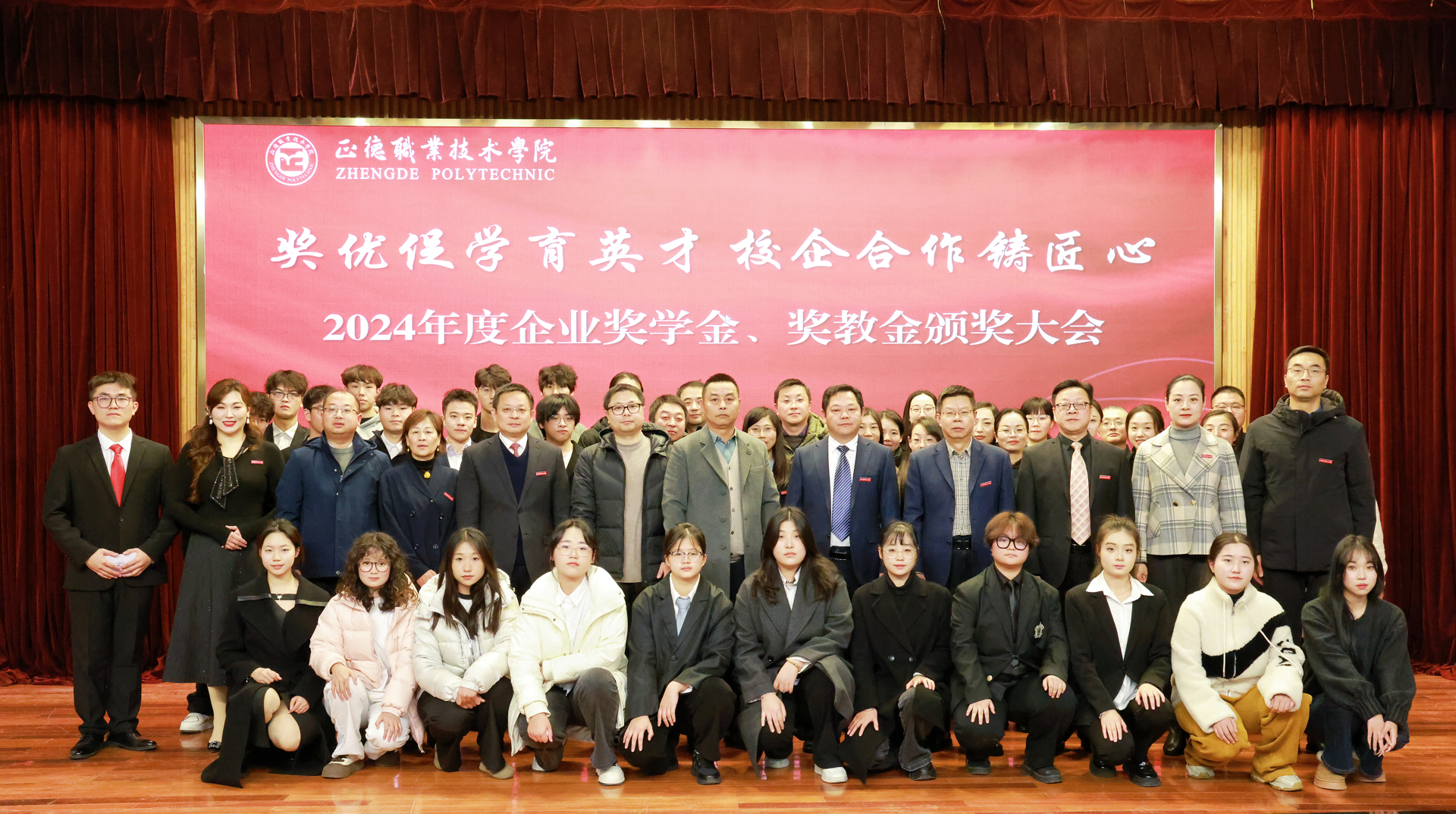 这次企业奖学金、奖教金颁奖大会是正德学院办学历史上的首次,7家企业在校设立企业奖学(教)金,金额高数量多,充分体现了企业对学院办学实力和人才培养质量的高度认可。2024年,我院产教融合工作步入发展快车道:聚焦高端装备、低空经济、“一老一小”等国家战略的产业领域,一年来先后走访了近50家国防军工及行业龙头企业,校企合作单位增长近70%,数量与质量均取得显著突破。积极探索产教融合新模式,与立宝托育、拓攻机器人、南京新手村等企业共建3个高水平实训平台;携手南京建策、上海格思等8家企业,设立了8个订单班,涵盖10个热门专业,全面覆盖所有教学系。校企深度融合,为我院师生构筑了优质的综合实践平台,助力师生在2024年各类竞赛中屡获佳绩。