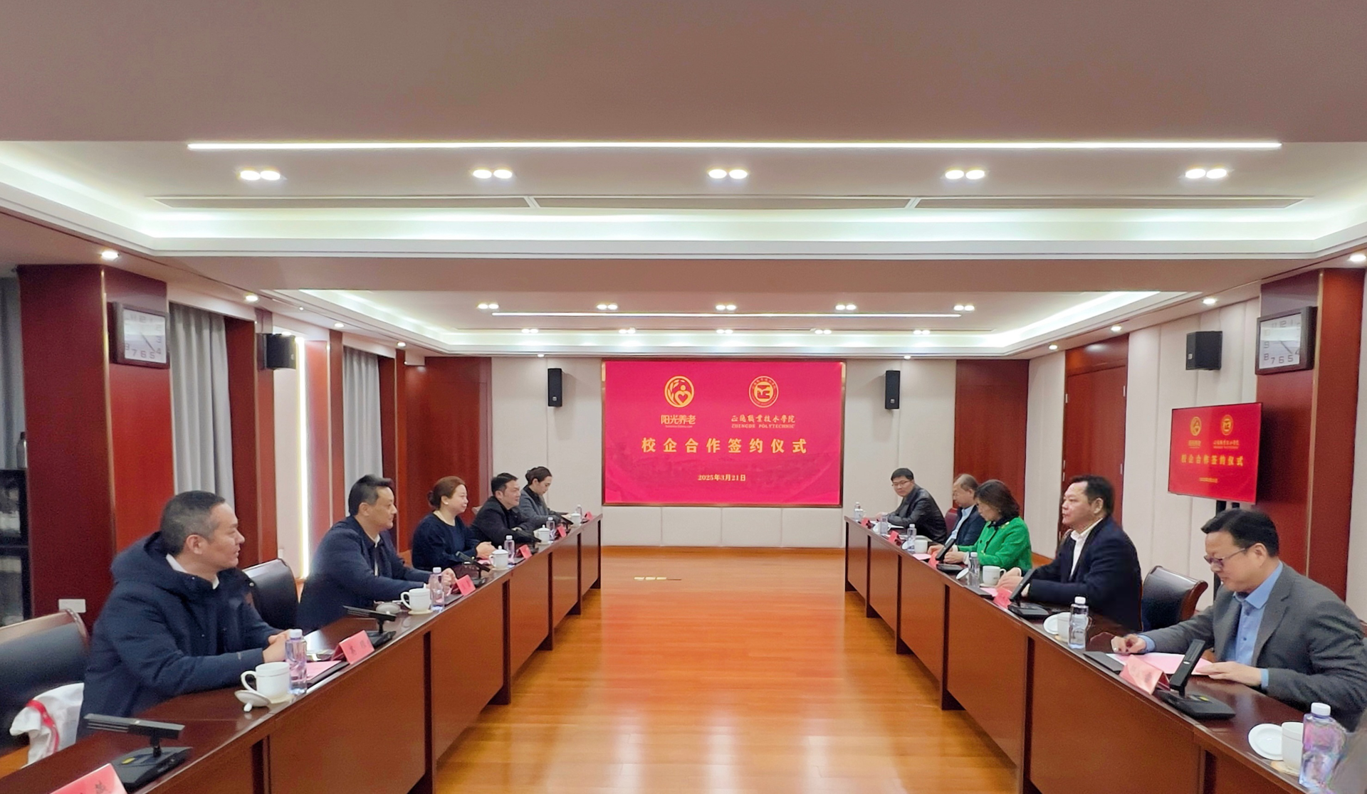 在与会人员的共同见证下,赵凯雷副院长、尹建芳总经理分别代表正德学院、阳光养老签署了校企合作协议。双方将围绕共育“阳光订单班”技能人才、共建养老服务中心、共同开展社会服务等方面,打造产学研教一体化融合发展的新生态,为提升民生福祉做出新的贡献。