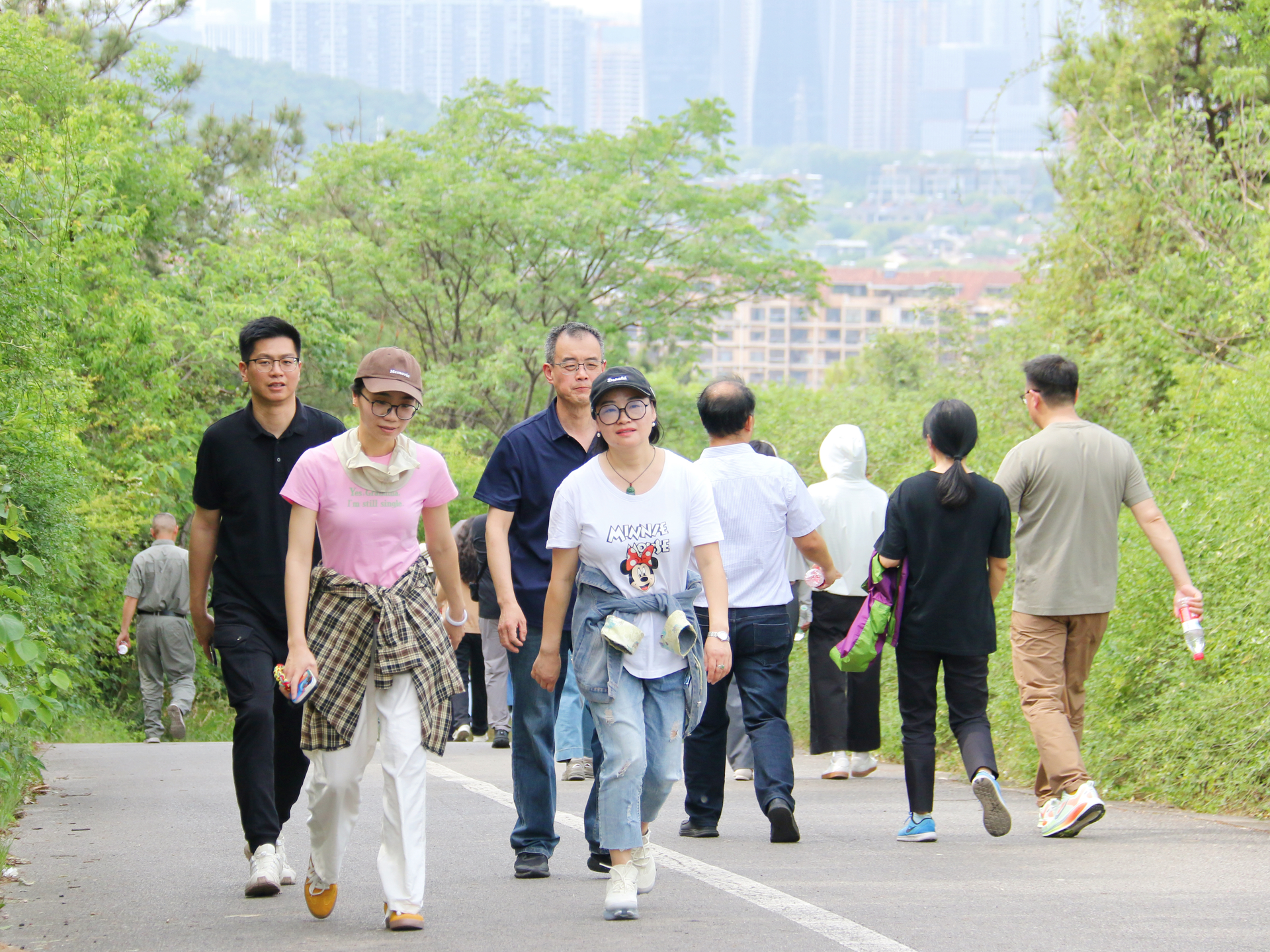 4月30日下午阳光明媚,微风轻拂,大家按时来到集合点,认真做着准备活动,随着发令枪响,登山活动正式开始。山路两旁,绿树成荫,繁花似锦,大家一边健走,一边分享着彼此生活工作中的趣事,享受着此刻踏青带来的快乐。