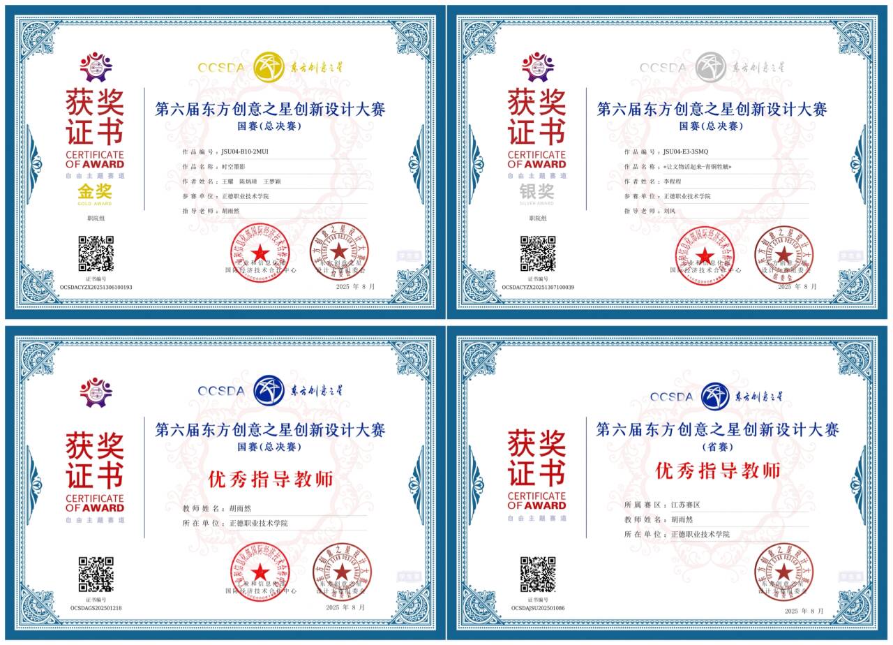 在近日落幕的第六届“东方创意之星”设计大赛中,我院艺术设计与建筑工程系数字媒体技术专业2024级学生取得了优异成绩,展现了卓越的创造力和专业技能。胡雨然老师凭借出色的指导,分别荣获省赛和国赛优秀指导教师奖,彰显了我院专业教学的高水平。