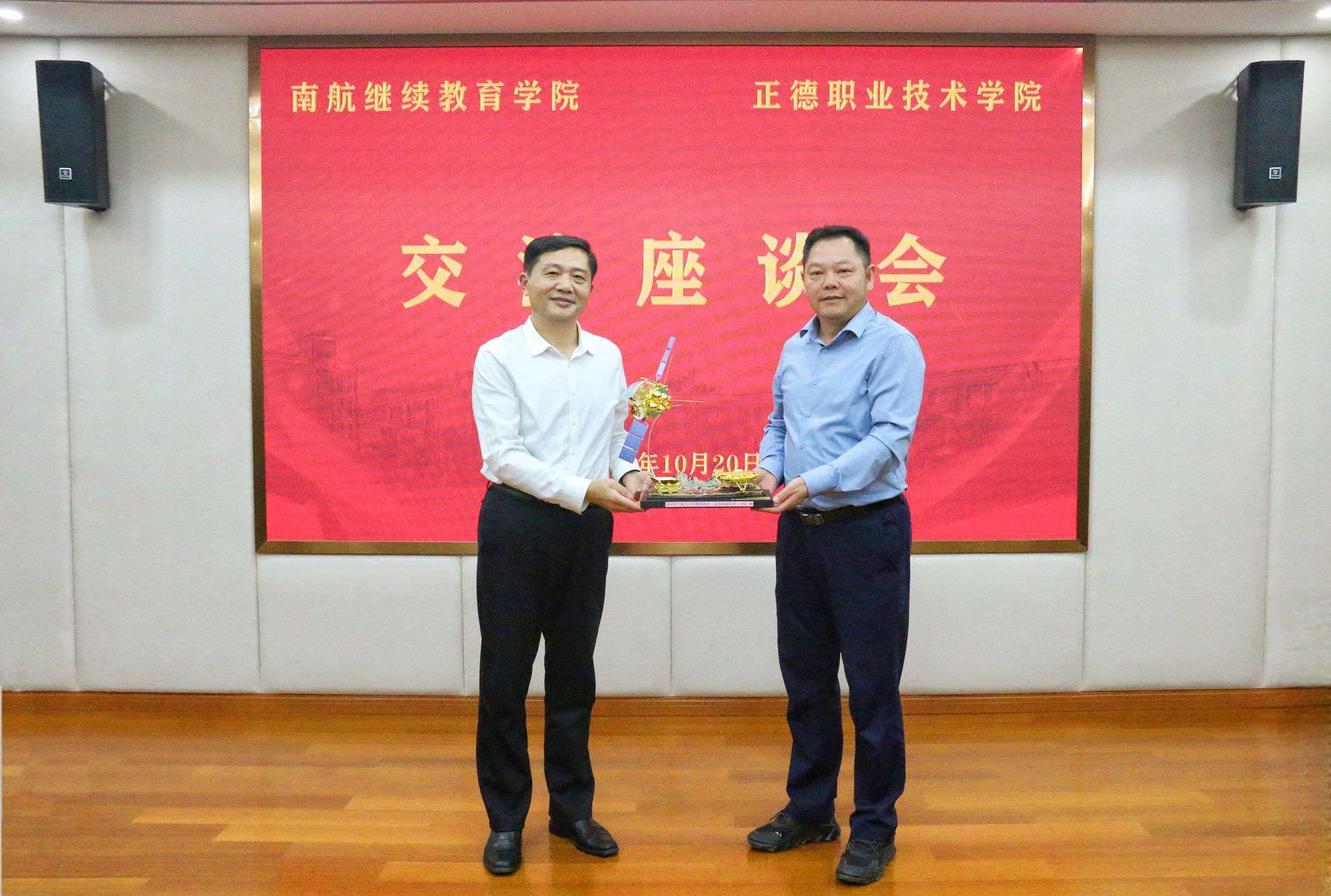 座谈结束后,江爱华代表南航继教院向我院赠送“天问一号”模型,象征双方携手探索创新发展之路。随后,在院领导陪同下,南航继教院领导参观了我院大国工匠工作室、“正德—大华”无人机综合实训中心、科沃斯检测实训中心,详细了解学院实训教学与产教融合成果。