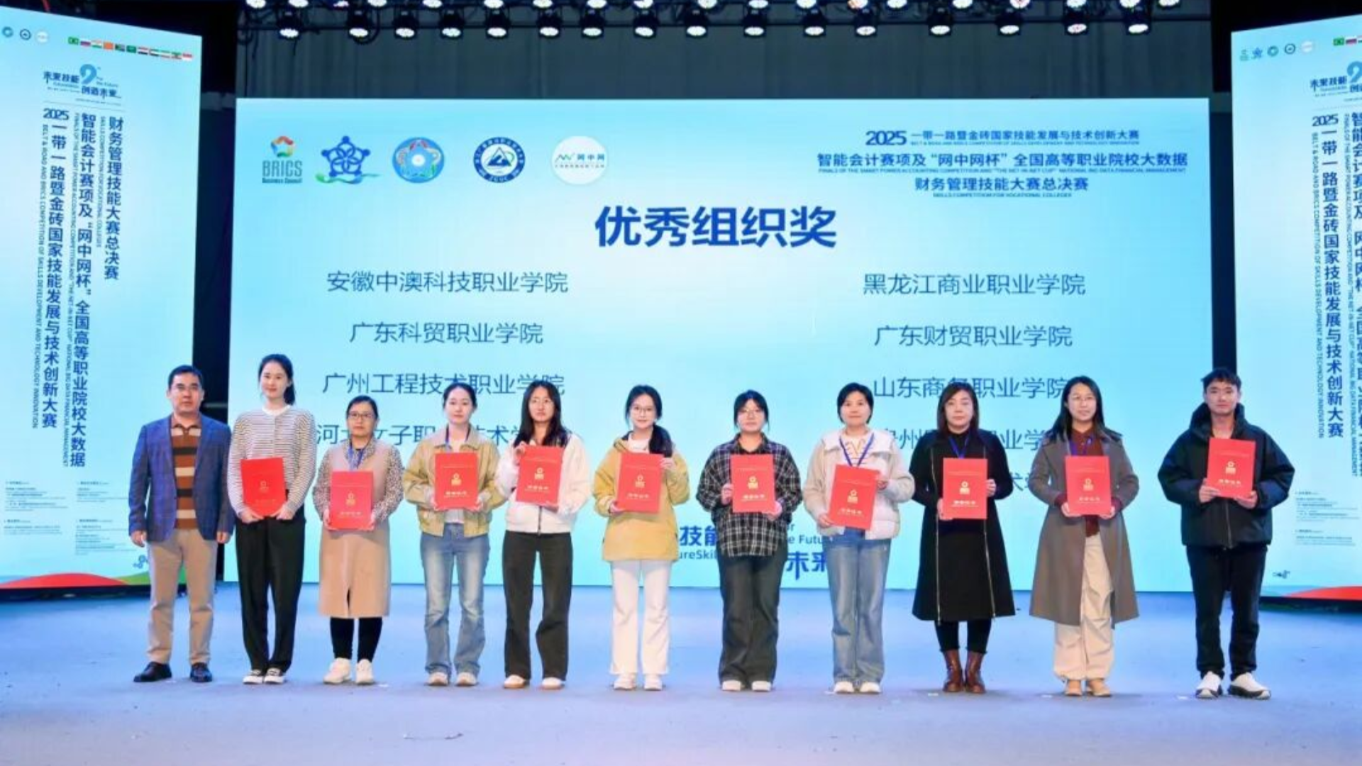 11月23日,我院经济与管理系在2025年一带一路暨金砖国家技能发展与技术创新大赛智能会计赛项全国总决赛中传来喜讯,由李家唸、王黎娜老师指导,吴雨轩、周言之、彭安琪、于童淼组成的代表队,凭借扎实的专业知识和默契的团队合作,荣获全国总决赛团队二等奖。同时,学院荣获“优秀组织奖”,这充分展示了学院在大数据财务管理、智能会计领域人才培养方面的实力。