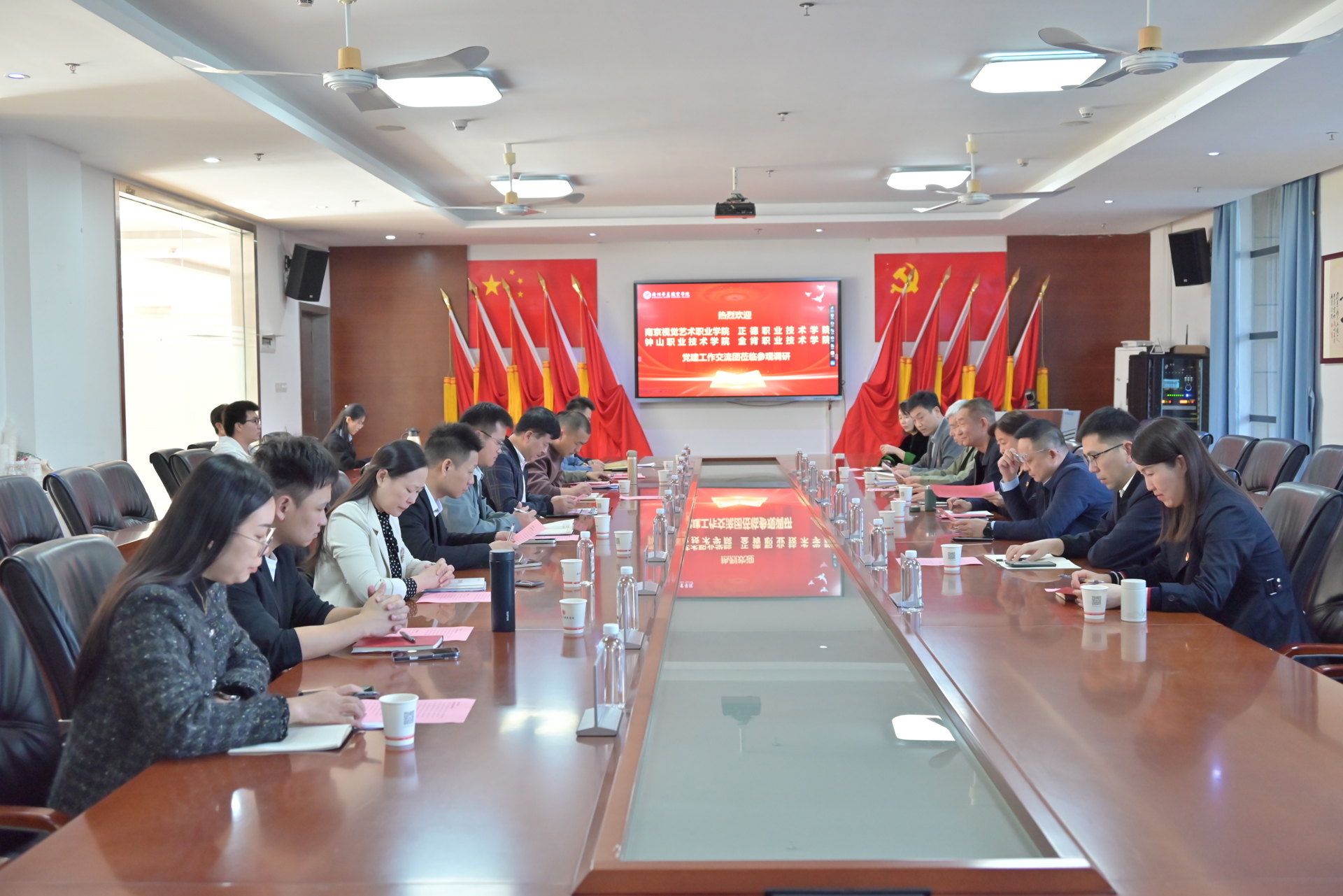 南京四校党委书记——南京视觉艺术职业学院党委书记蒋云尔、金肯职业技术学院党委书记宋丁全、钟山职业技术学院党委书记翟天灵、正德职业技术学院党委书记孙雷在交流中介绍了本校在党建与教育教学深度融合方面的机制创新、路径探索与阶段性成效,重点围绕红色文化育人、基层组织活力提升、党建品牌培育等议题进行了深入交流,并就如何实现党建工作规范化、特色化、品牌化展开热烈讨论。
