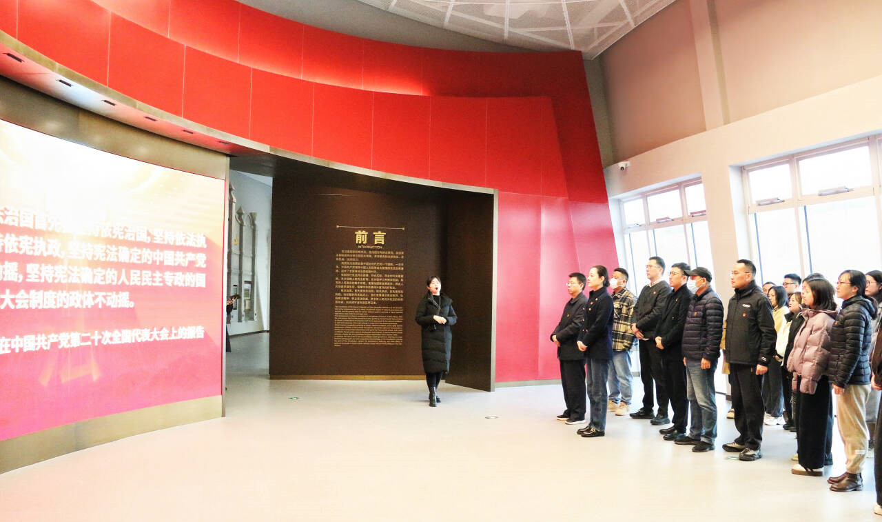 随后,同志们移步至“江苏省人民代表大会制度展”。该展览系统展示了人民代表大会制度在江苏的生动实践,通过丰富的图文与史料,清晰呈现了地方国家权力机关依法履职、服务发展、保障民生的历程。参观此展,使党员们对我国的根本政治制度如何具体践行和保障宪法精神有了更为直观和深刻的理解。