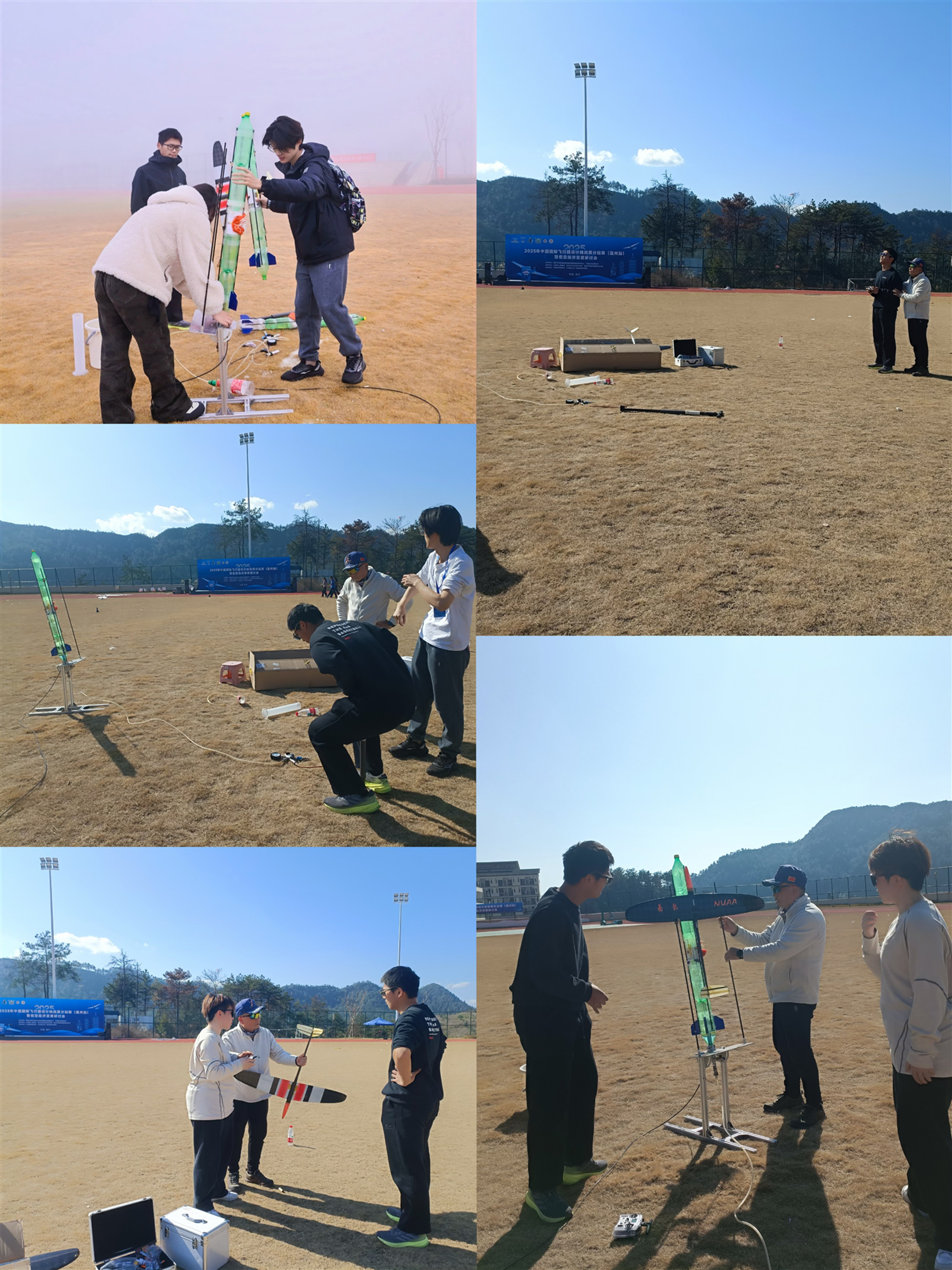 荣誉的背后,是无数个日夜的坚守与打磨。早在年初,我院航模队便在袁伟、李倩、刘佳等老师的指导下,全身心投入到“模型水火箭助推航天器”项目的备赛中。备赛期间,团队成员跨越专业界限,紧密协作。从气动布局的图纸设计到模型结构的精细制作,从参数的反复调试到发射演练的精益求精,他们攻克了一个又一个技术难关。12月20日决赛现场,自制的水火箭助推航天器腾空而起,飞行姿态稳定,各项指标精准达标,最终以明显优势摘得桂冠,赢得了现场评委与各路强队的高度认可。