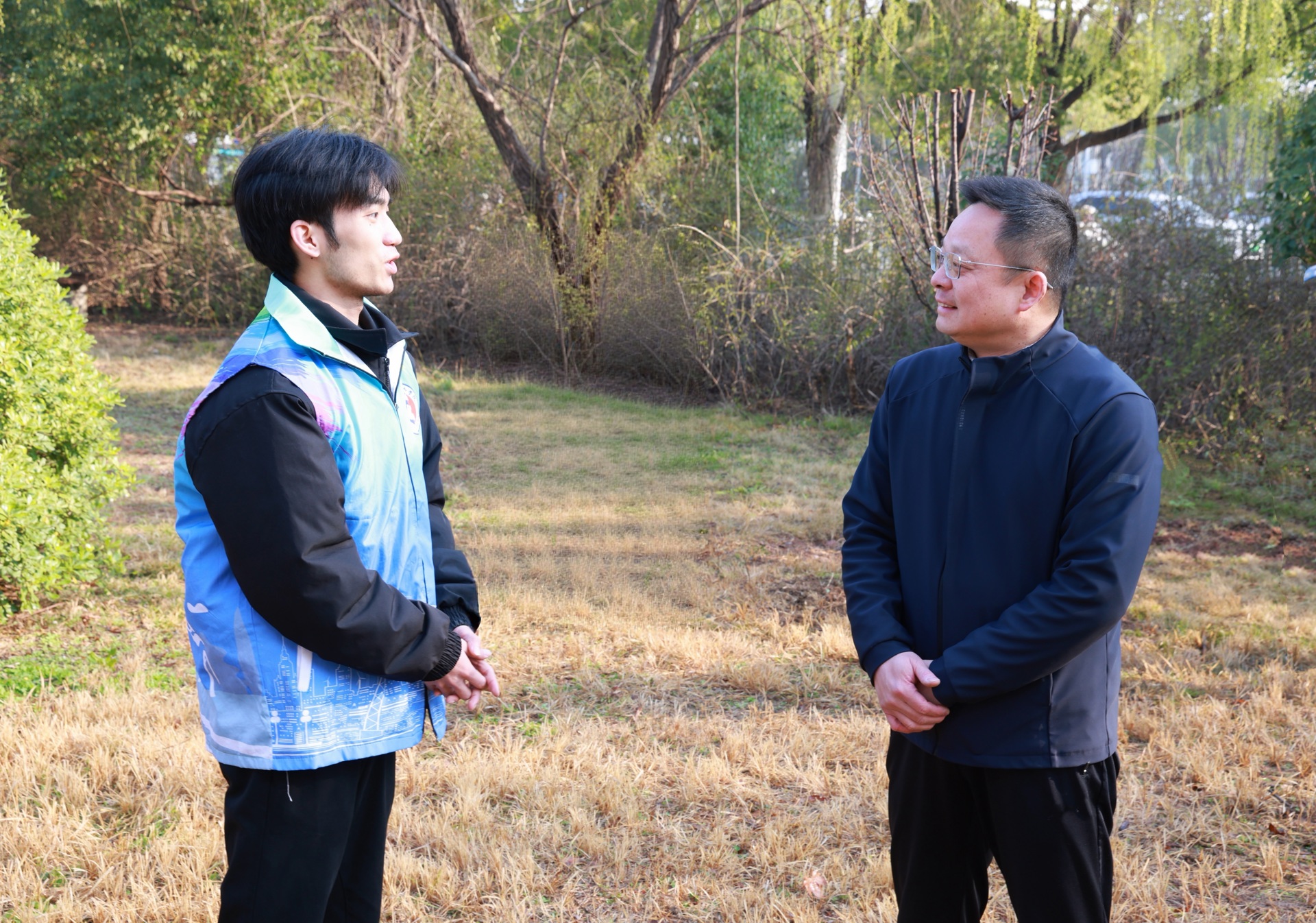 活动现场,师生并肩劳作、亲切交流。孙雷与同学们深入交谈,了解学生专业学习、职业规划等情况,鼓励大家学好专业本领,在不断提升自己能力和素养的同时,工作后更好地为国家建设服务。他同时也询问了大家对校园环境建设的想法,并寄语青年学子“十年树木,百年树人”。他强调,学院坚持“五育并举、全面发展”,希望同学们既要掌握专业知识与技能,也要重视品德修养、行为习惯与身心健康,在协作中凝聚力量,在劳动中体悟价值,把植绿爱绿护绿的理念内化于心、外化于行,以健全人格与过硬本领成长为德技并修的高素质技术技能人才。