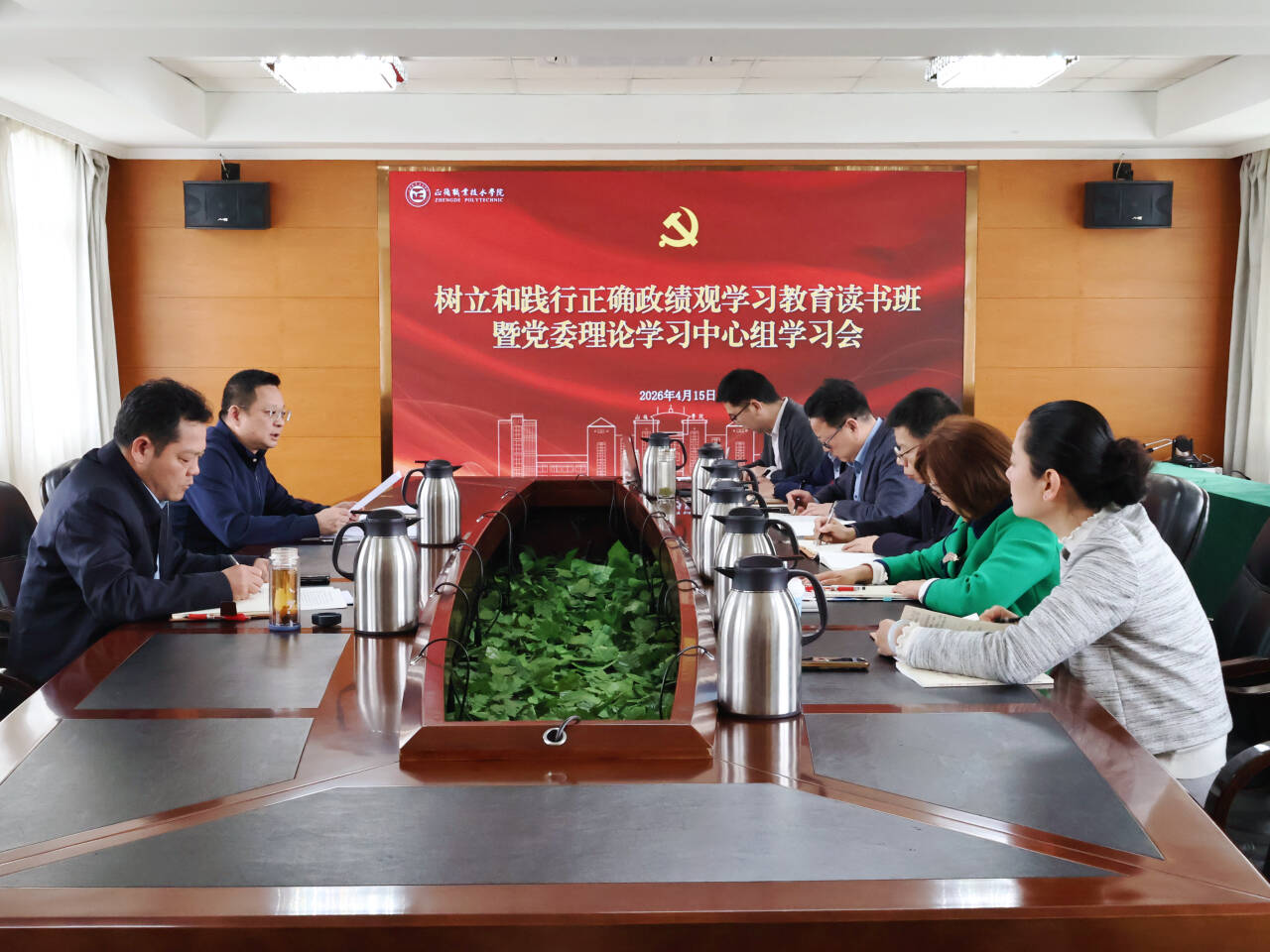 4月15日下午,blh漫画 举行树立和践行正确政绩观学习教育读书班暨党委理论学习中心组学习会,专题学习《习近平关于树立和践行正确政绩观论述摘编》。院党委理论学习中心组全体成员参加学习会。会议由院党委书记、政府督导专员孙雷主持。