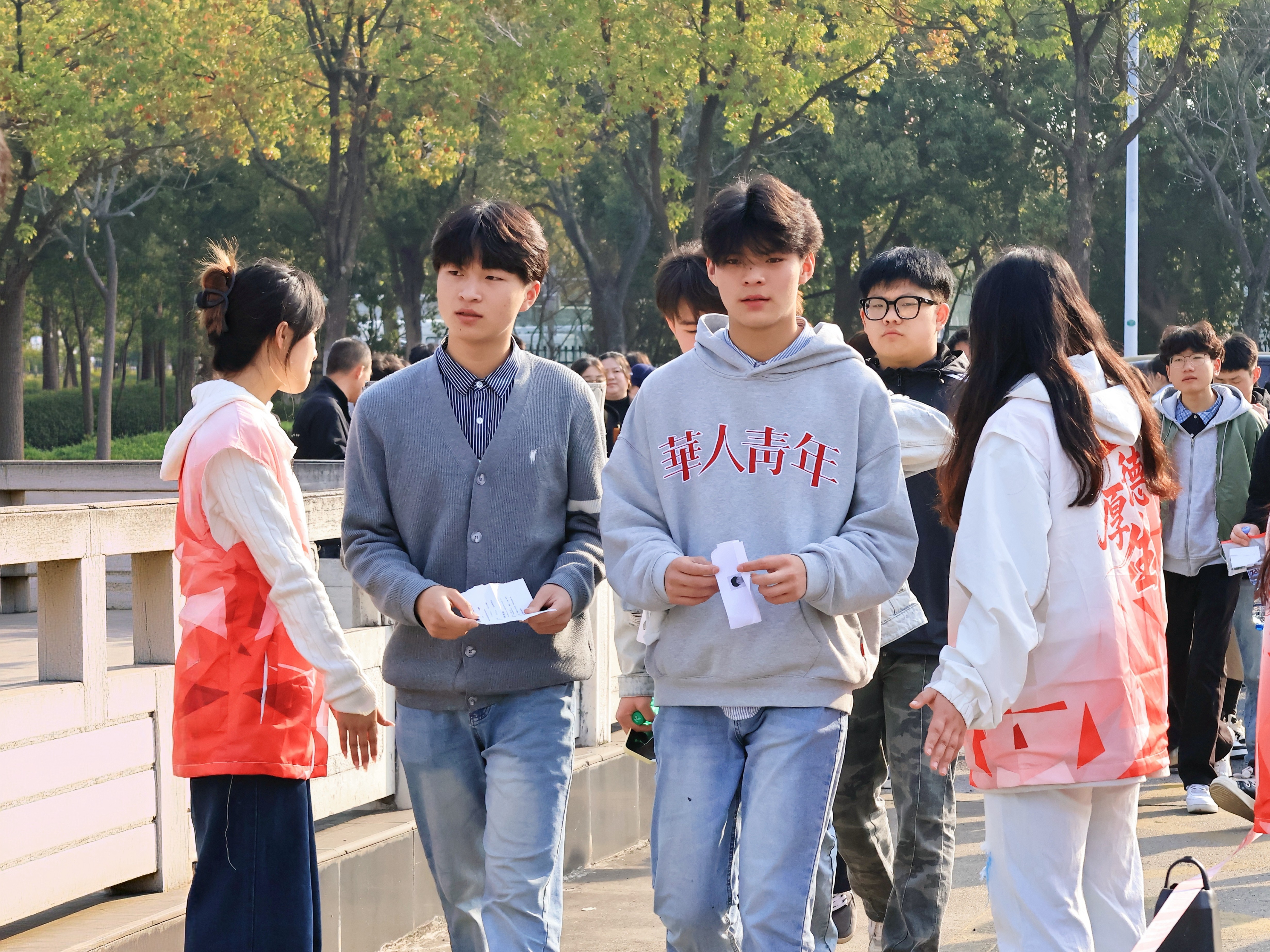 考试当天,学院坚持“以生为本”,全方位筑牢服务保障防线,全力为考生营造便捷、舒适的应考环境。校园内随处可见清晰的考场指示标识,150多名志愿者主动靠前,为考生提供全程引导、咨询答疑等贴心服务;入口处专门设立准考证补办打印点,安排专人值守,及时为考生解决忘带、遗失准考证等实际困难,用细节传递温暖。考场内,全体考务人员严格按照程序开展工作,全程录音录像;考生们沉着冷静、诚信应考,考场秩序井然,形成了严谨有序、文明诚信的良好考风考纪。