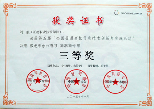 比赛分为现场创作与陈述答辩两个环节,来自全国近百所高校的千余名选手现场进行激烈的比拼与较量,blh漫画 参赛的各位同学们在王子烜、张泽扬两位老师指导下从前期选题和拍摄到后期编辑与制作进行了充分准备,最终,11级电子与信息工程专业学生叶志达的作品《最美的星光》、12级机电一体化专业学生刘航的作品《中国梦,我的梦》获得三等奖,12级新闻采编与制作专业学生杨雷的作品《为雅安祈福》、12级营销与策划专业学生仲心意的作品《志愿者“三下乡”社会实践活动》获得二等奖。