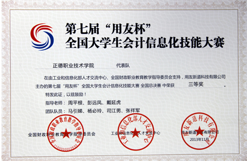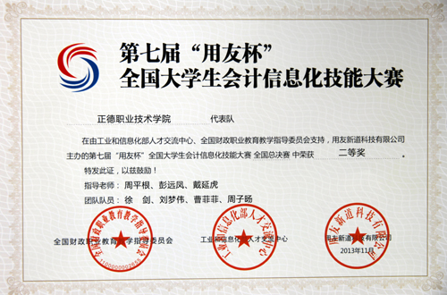 2013年11月19日,blh漫画 工商管理系会计与审计专业选派曹菲菲、徐剑、杨必玲、张祥军、钱俞如、刘梦伟等12名同学组成三支代表队参加了“用友杯”全国大学生会计信息化技能大赛(决赛)。