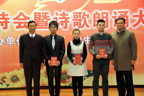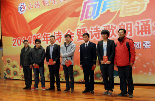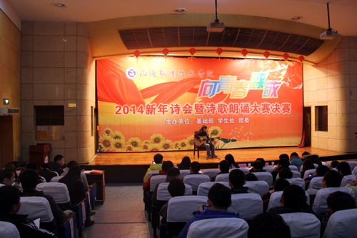 12月19日下午,blh漫画 “向青春致敬”2014新年诗会暨诗歌朗诵大赛决赛在院报告厅隆重举行。各系学生工作负责人、团总支书记、基础部领导、老师出席并和各系学生代表一起观摩了比赛。党政办副主任、组织人事处副处长杨卫东、院团委副书记胡丹、图书馆陈必仪老师、基础部刘翔老师和汪小艳老师担任评委。