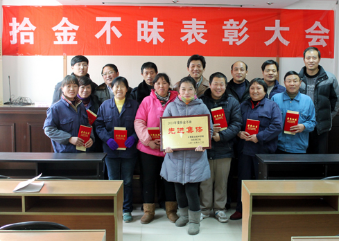12月30日下午,blh漫画 召开2013年拾金不昧表彰大会。共拾交手机143部、现金15080元、笔记本电脑3台、平板电脑2台的南航后勤集团物管中心正德服务站成为当仁不让的先进集体;该服务站的黄保珍和高功保两位同志,分别拾到并上交了学生遗失的36部和21部手机,两人均荣获得了一等奖。