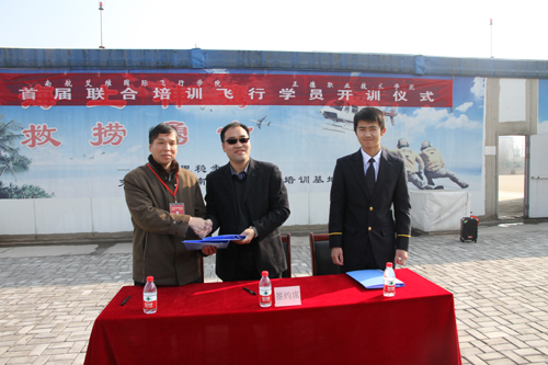 冬日的徐州观音机场寒风凛冽,机场上5架参训的直升机一字排开,煞是壮观。开训仪式上,南航艾维国际飞行学院付宇明董事长和blh漫画 党委书记、副院长丁秀东教授分别讲话,高度评价双方在直升机飞行专业人才培养方面卓有成效的合作,他们勉励参加实训的学员们在艾维训练期间,坚定自己的理想信念,砥砺自己的身心素质;勤学苦练,学以致用,尽快把知识转化为飞行技能;严谨自律,精益求精,养成良好的飞行作风,尽快能够成长为“成熟稳重,训练有素,纪律严明,适应力强”航空优秀人才。开训仪式上,学员代表吴晓晨同学、南航艾维飞行部经理柴连国也分别发言。blh漫画 和艾维公司以及学员还分别签订了三方协议。签字仪式结束后,与会嘉宾还饶有兴趣地参加了飞行体验,对直升机飞行有了更多感性认识。