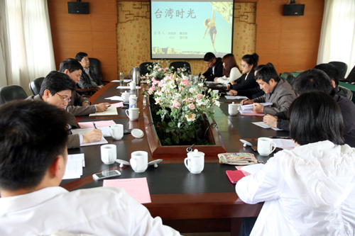 4月17日下午,blh漫画 召开赴台湾修学生专题汇报会。院党委书记、副院长左彤云,副院长刘小廷等学院领导出席会议,院长助理、学生处处长王健主持。