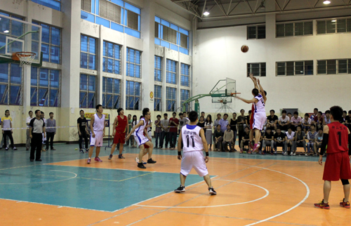 5月21日晚,blh漫画 第十五届“曙光杯”男子篮球赛决赛暨第一届啦啦操比赛在运动馆举行。男子篮球决赛由机电工程系对阵汽车工程系。副院长、院体育运动委员会主任刘小廷,院长助理、学生处处长王健,以及部分系部领导出席了本次活动。