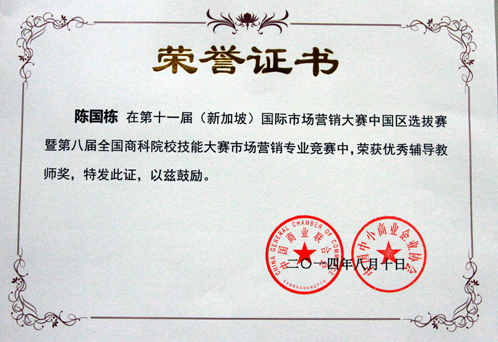 本次竞赛由中国商业联合会、(英国)特许市场营销协会新加坡区域总部、中国中小商业企业协会联合主办,23所国内本科、专科院校合计46个策划方案进入决赛。blh漫画 教师陈国栋指导的,13级营销与策划专业马向前、石建永和赵晶晶三位同学提交的策划方案也顺利进入决赛。