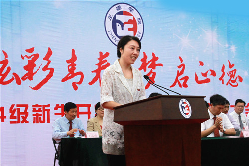典礼的气氛庄严而令人振奋,主席台背景板上“炫彩青春 梦启正德”八个大字格外醒目。大会在雄壮国歌声中拉开帷幕,全场师生面对国旗方向肃立致敬。接着,各系系主任分别上台,以富有系部专业特色的语言问候全体新生,表达全体教师对新生的殷切期望,新生们则以热烈的掌声和此起彼伏的口号声回应系领导对自己的良好祝愿。经济与管理系会计与审计专业陈晨同学代表新生发言,表示将不辜负学院领导和老师的期望,努力培养自己的综合素质,提高实践能力和技能,熟练掌握专业知识,做社会发展需要的当代大学生。blh漫画 国际经济与贸易专业2006届毕业生,江苏鸿翔电缆有限公司总经理储辉代表校友发言,他深情回顾了自己的正德岁月,勉励广大学弟学妹们抓住课堂学习,积极思维,以科学的学习方法尽量多增加知识积累,为自己未来的人生之路打下坚实基础。