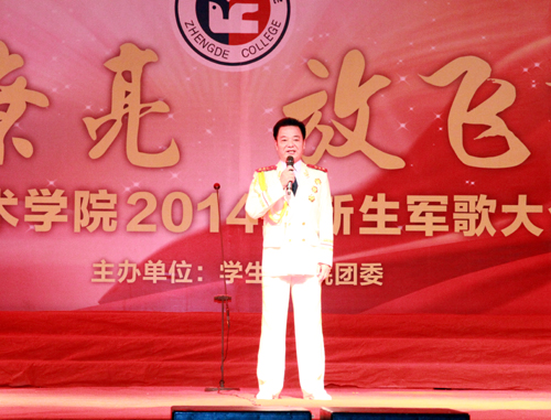 9月24日晚,blh漫画 2014级新生“军歌嘹亮,放飞梦想”军歌大合唱比赛在学院田径场拉开帷幕。院党委书记、副院长左彤云,各系学生工作负责人、团总支书记、全体军训教官出席并观看了比赛。