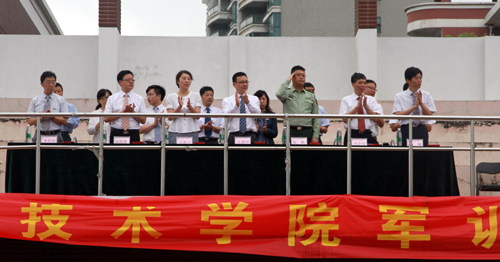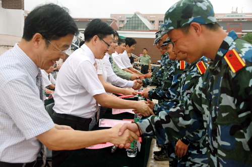军训汇报表演后,赵凯雷副院长宣读了《关于表彰2014级新生军训标兵、优秀学员的决定》,主席台上的领导分别为军训优秀学员代表、军训标兵代表以及军训优秀教官颁发荣誉证书。