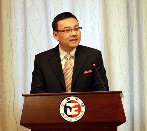 学院汇报结束后,省教育厅高等教育处袁靖宇处长讲话。他在分析了江苏省内民办高职的四种类型以及特点后指出,在目前的生源形势下,江苏民办高职院校正面临严峻挑战,省教育厅对此次评估寄予厚望,就是要在民办高校最困难的时候帮助民办高校找准问题走出困境。希望评估组专家们能充分挖掘正德学院的样本价值,探究我省民办高职在新形势下的改革发展之路。最后,袁靖宇处长引用了毛主席的诗词“高天滚滚寒流来,大地微微暖气吹”,祝愿民办高校会走出困境,祝愿正德会有更加美好的明天。