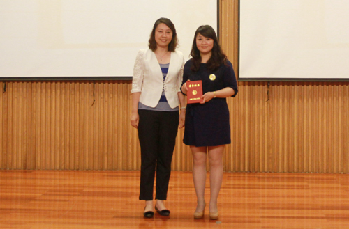 学生处副处长祝佳俊为优胜奖获得者颁奖