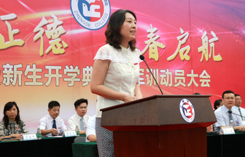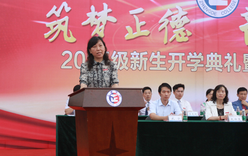 9月15日上午,blh漫画 隆重举行“筑梦正德 青春启航”2015级新生开学典礼,院长庄群华在讲话中勉励全体新生在未来三年的大学学习生活中学会做人、学会学习、学会生活,在正德学院这片沃土上放飞自己的青春理想。学院党委书记、副院长左彤云、副院长刘小廷、赵凯雷,院长助理赵湘莲、王健以及各单位主要负责同志出席典礼。左彤云主持了开学典礼。