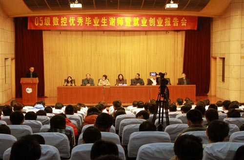 三位毕业生分别是:05级数控技术专业学生苑晴,这位毕业生毕业后应聘到工厂,从工人到材料员,再到采购员,积累了经验以后自己创业,现在已成为一个中型企业的总经理,年纯利润近千万元。另一位是05级数控技术专业的学生郭明峰校友,这位校友在校努力学习,大二成功转本,本科毕业后通过江苏省有关部门的的考核成为一名大学生村官,现在已是南京汤山集体资产公司的副总经理、汤山镇湖山村党支部书记。还有一位05级数控技术专业的吴刚校友,他经过多年打拼,现在已经是南京洪茂祥广告公司总经理。