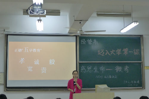 针对社会主义核心价值观内容宽泛、不易理解的特点,blh漫画 确立了以开展活动为载体,通过活动向学生渗透核心价值观的思路,与行为习惯培养结合起来,与先进事迹结合起来。学院以中国传统文化之精髓融合当代学生之实际,开展了“孝、宽、诚、责、毅”五字文化教育(以下简称“五字”),打造正德学生核心价值品质,使其成为正德学生的价值认同、行为准则和人格标签。