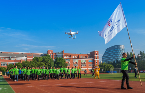 本届运动会各系入场式展示亮点频现。电子与信息技术系、艺术设计与建筑工程系的方阵前面,几个憨态可掬的卡通造型萌翻在场师生,机电工程系学生现场表演武术,一招一式,颇具专业风范,民用航空系代表队的入场表演更是惊艳全场,当该系方阵进入场地时,一架战斗机航模从跑道呼啸而起,从主席台上空掠过,航空服务专业学生们的礼仪操让人赏心悦目,表演结束后,近百个气球腾空而起,引起了师生们的一阵又一阵掌声和欢呼。