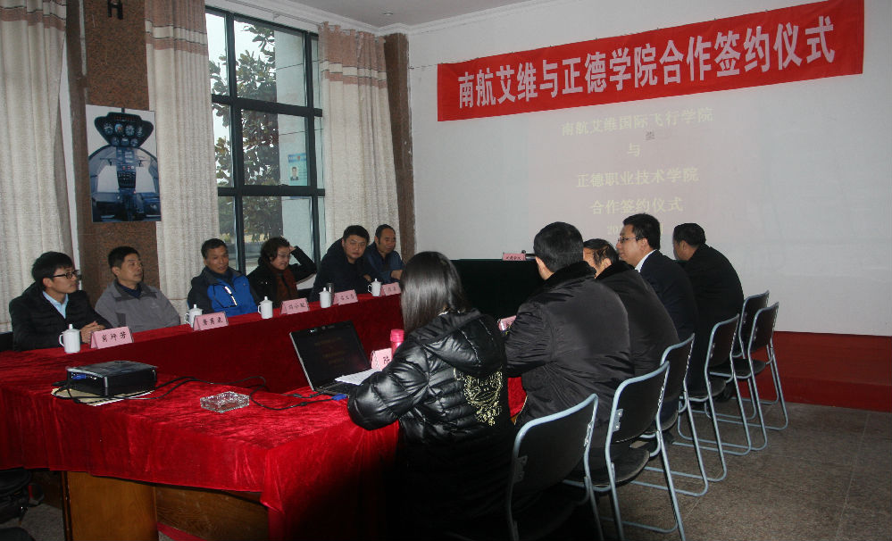 会上南航艾维公司常务副总李海介绍了南航艾维公司近期的发展,总结了前期学员在艾维飞行实训的训练及考证情况;并对blh漫画 输送学生的精神面貌、生活作风等方面给予了较高评价,该批学员已与相关公司签署工作协议,获得用人单位的好评。刘小廷副院长首先对blh漫画 与南航艾维公司的成功合作表示了祝贺,并对未来双方在直升机驾驶技术、飞机机电设备维修专业的深入合作提出了更高的期望,他希望经过双方努力,培养出符合行业标准要求的高素质人才,使学校、公司、学员三方都能共赢。双方在热烈的掌声中共同签署了合作协议。