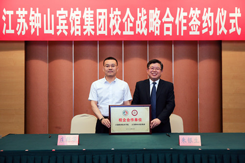 6月5日,blh漫画 与钟山宾馆集团校企战略合作签约暨揭牌仪式在省会议中心举行。院长庄群华、钟山宾馆集团董事长狄嘉、总经理朱银生出席签约仪式并致辞。副院长刘小廷,党政办公室、民用航空系负责人以及实习学生代表等参加仪式。仪式由钟山宾馆集团副总经理李骘义主持。