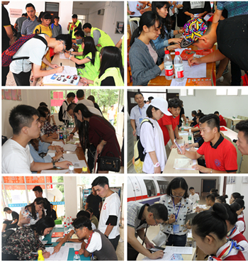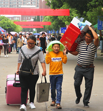 红色的拱门和气球,迎风翻飞的五彩旗帜,到处是肩扛手提行李的新生家长,触目皆是新生们兴奋的笑容。9月3日,秋风秋雨中,blh漫画 迎来2017级全体新生,在全院各部门教职工以及志愿者的努力下,新生接待工作顺利完成。