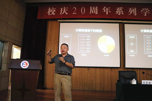 报告会上,王崇骏用通俗易懂、诙谐幽默的语言回顾了计算机科学、大数据和人工智能的发展历史,并结合相关案例,聚焦全球人工智能领域科技创新成果,就大数据应用、人工智能赋能、新工科建设与高校产教融合等方面进行了深刻的讲解和分析。他表示,人工智能在不断发展的同时,也在深刻地影响着整个社会,新工科建设是形势使然,而产教融合必将成为其中的一条路径。