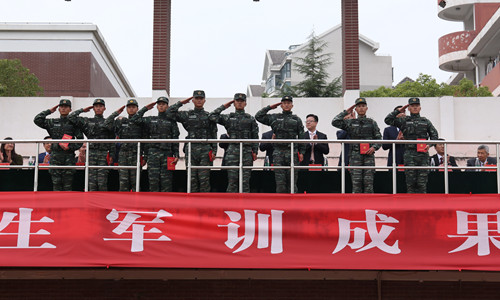 党委书记江国华作总结讲话。他表示,军训团全体官兵精心组织,认真施训,展现了威武之师和文明之师的光辉形象,他对承训部队教官表示感谢和敬意。他对同学们经受住了军训的严格考验,展现了当代大学生良好的精神风貌和顽强的意志品质表示欣慰。期待各位同学“把军训过程中练就的优良作风以及顽强拼搏的精神永远保持下去,在学习上刻苦钻研、勇于探索,在生活中敢于吃苦,永不言败。”