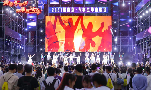 5月22日晚,由南京市委创新办、市人社局、团市委共同主办的“青春不散场,归来仍少年”2021届南京·大学生毕业歌会在南京奥体中心东广场举行,毕业生们用音乐唱响“创新名城”,演绎青春的联欢,歌会全部节目由在宁高校选拔推荐,blh漫画 社团正舞堂舞蹈《GIRL》作为高职院校唯一节目受邀参与表演活动,同时,blh漫画 135名师生现场观看了本次大学生毕业歌会演出。