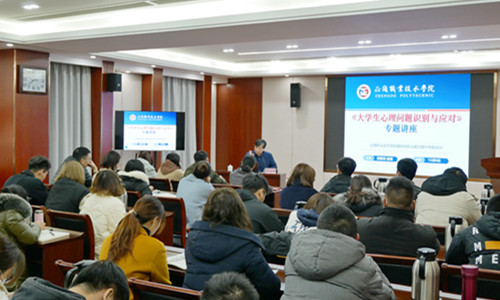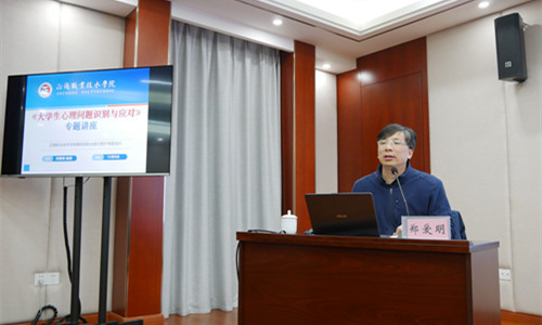 为贯彻落实《省教育厅关于加强大学生心理健康教育管理工作的通知》(苏教学函〔2021〕13 号)的文件精神,提升blh漫画 学工队伍人员的心理健康知识和技能水平,提高心理健康教育工作的针对性和有效性。12月8日下午,blh漫画 邀请南医大附属逸夫医院临床心理科执行主任、南京医科大学马克思主义副院长、江苏省高校心理健康与研究中心(江宁基地)主任郑爱明教授来校开展“大学生心理问题识别与应对”专题讲座。院长助理王健、学生处处长祝佳俊、各系学生工作负责人、全体辅导员聆听了报告,学生处处长祝佳俊主持本次讲座。