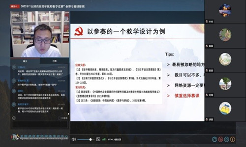 评审组组长刘长江教授在充分肯定4位教师课堂教学展示的同时,提出了五点建议:一是在教学理念的设计上,要围绕教学理念精心设计教学活动和实践环节,通过教学理念引领学生掌握知识、技能。二是在重点内容的呈现上,在教学时要建立知识的宏观架构,找出知识、技能传授的“支撑点”,让学生有获得感。三是在课堂活动的设计上,要强化教师与学生、学生与学生之间的互动,促进学生深度学习。四是在教学手段的运用上,要善于运用现代信息技术、手段、平台,以数据思维驱动智慧教学。五是在课堂感染力的增强上,要注意语言神态,保持高昂的情绪,营造具有感染力的教学情境。