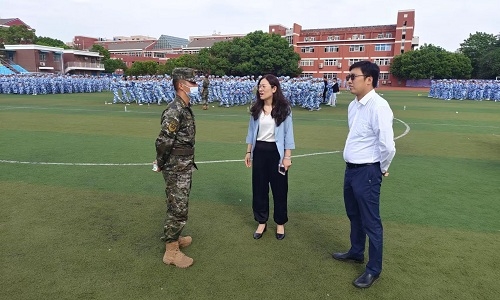 军训期间,学院党委副书记、副院长任慈,各系负责人、各系党支部书记走进2022级新生群体,与新生亲切交流,关心关注新生的军训训练和学习生活,鼓励全体2022级新生坚定理想信念,厚植家国情怀,牢固树立国防意识。