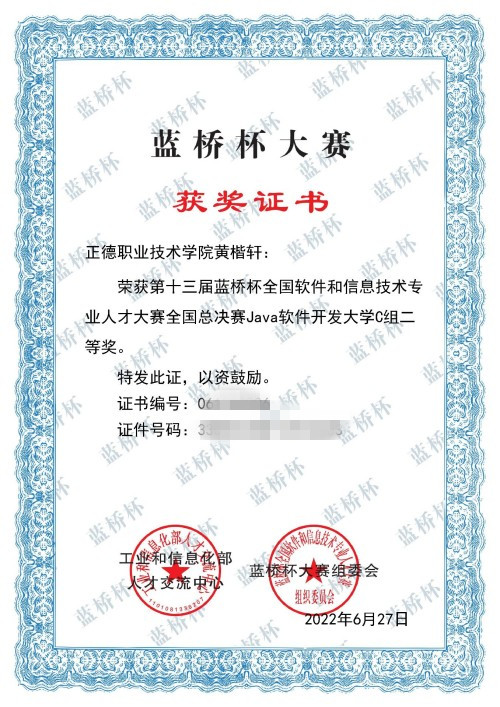 6月18日,第十三届蓝桥杯全国软件和信息技术专业人才大赛迎来巅峰之战——全国总决赛。来自全国一千多所高校近万名顶尖选手集结赛场,争夺蓝桥杯全国总决赛桂冠。省赛一等奖获得者blh漫画 软件技术专业的黄楷轩同学晋级国赛,并获得全国二等奖的好成绩。