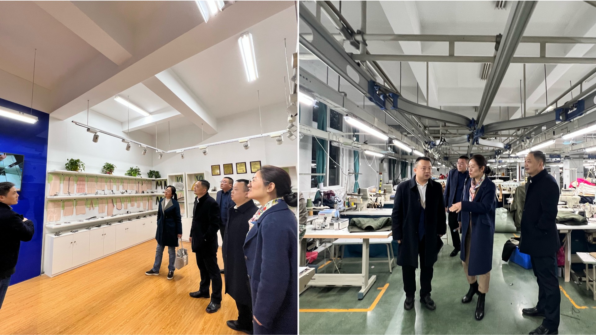 双方围绕人才合作培养模式进行深入挖掘和探讨并达成初步共识。会后,在华瑞时尚集团领导的陪同下,江爱华、任慈一行参观了公司工作间、辅料间、技术中心、检测中心、直播电商部。