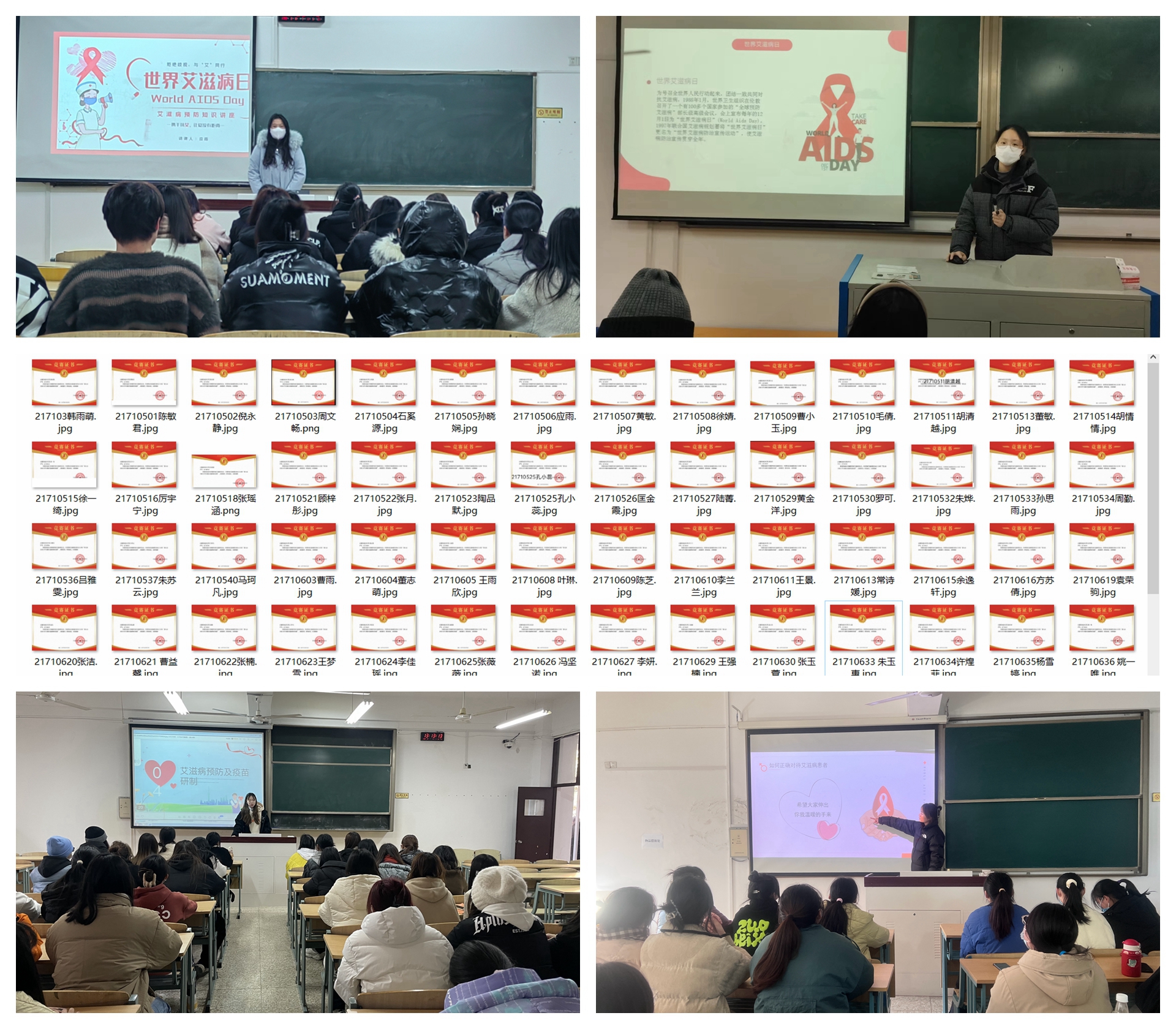 首先,各班通过召开主题班会,向同学们介绍了关于艾滋病的病因、传播途径等相关知识,让同学们充分了解目前艾滋病的流行状况及预防艾滋病的重要性,真正做到预防艾滋病,人人有责。通过播放预防艾滋病宣传片,让同学们了解到艾滋病的发病机理和症状,认识到艾滋病的危害性,树立自我保护意识,养成健康文明的卫生习惯和生活方式。