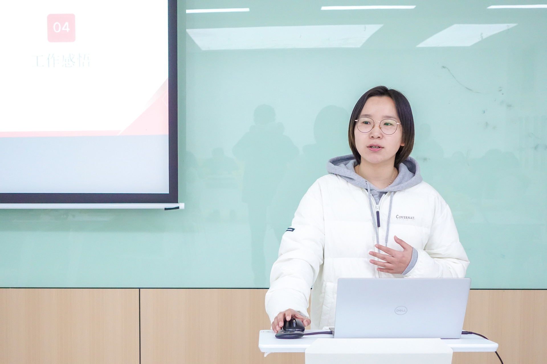 杨瀛老师以“爱生乐教是双边成长”为主题讲述了作为专业老师如何教育和培养学生,她从教师的职业规划和带领学生参加职业技能大赛分享个人成长经历,畅谈了师生共同努力积极备赛的心路历程,学生赢得奖项的同时,也获得自我成就感。