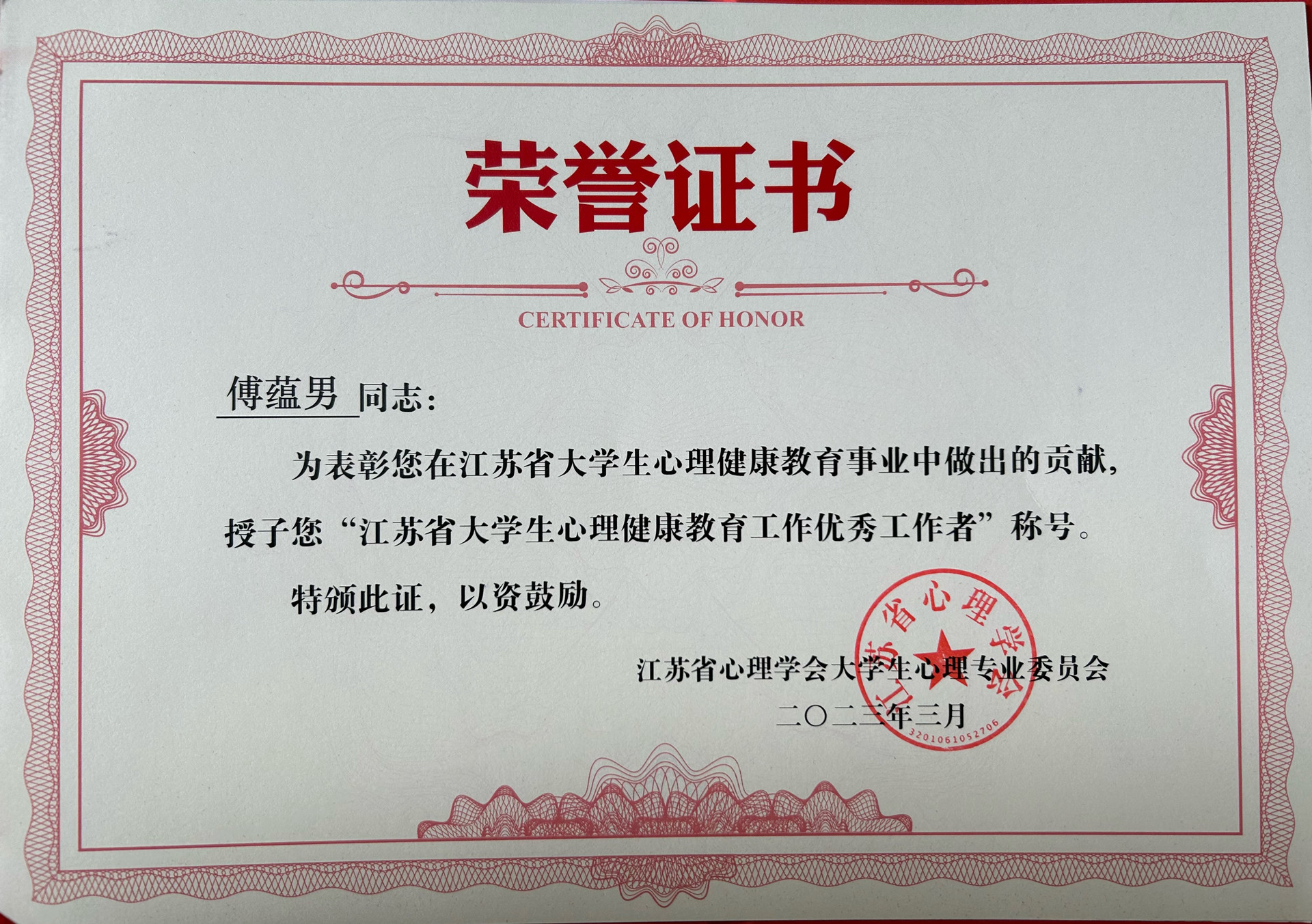 3月17日至19日,由江苏省心理学会大学生心理专业委员会主办的江苏省心理学会2022年学术分论坛暨大学生专业委员会年会在常熟理工学院成功举办,来自全省300余名高校心理健康教育工作者参加大会。本次大会对全省高校心理健康教育工作中涌现出的一批勤勉工作、甘于奉献、成绩显著的先进工作者进行了表彰,blh漫画 学生处大学生心理健康教育中心的傅蕴男老师荣获“优秀工作者”荣誉称号。